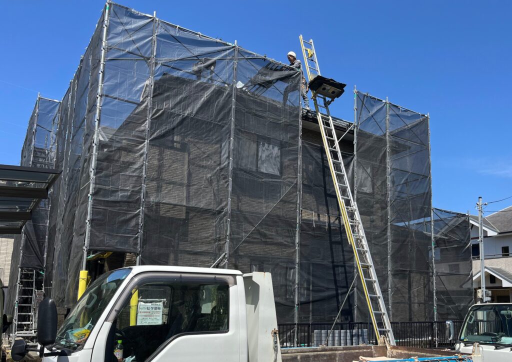 まず工事全体を安全に進めるため、仮設足場を設置いたします。