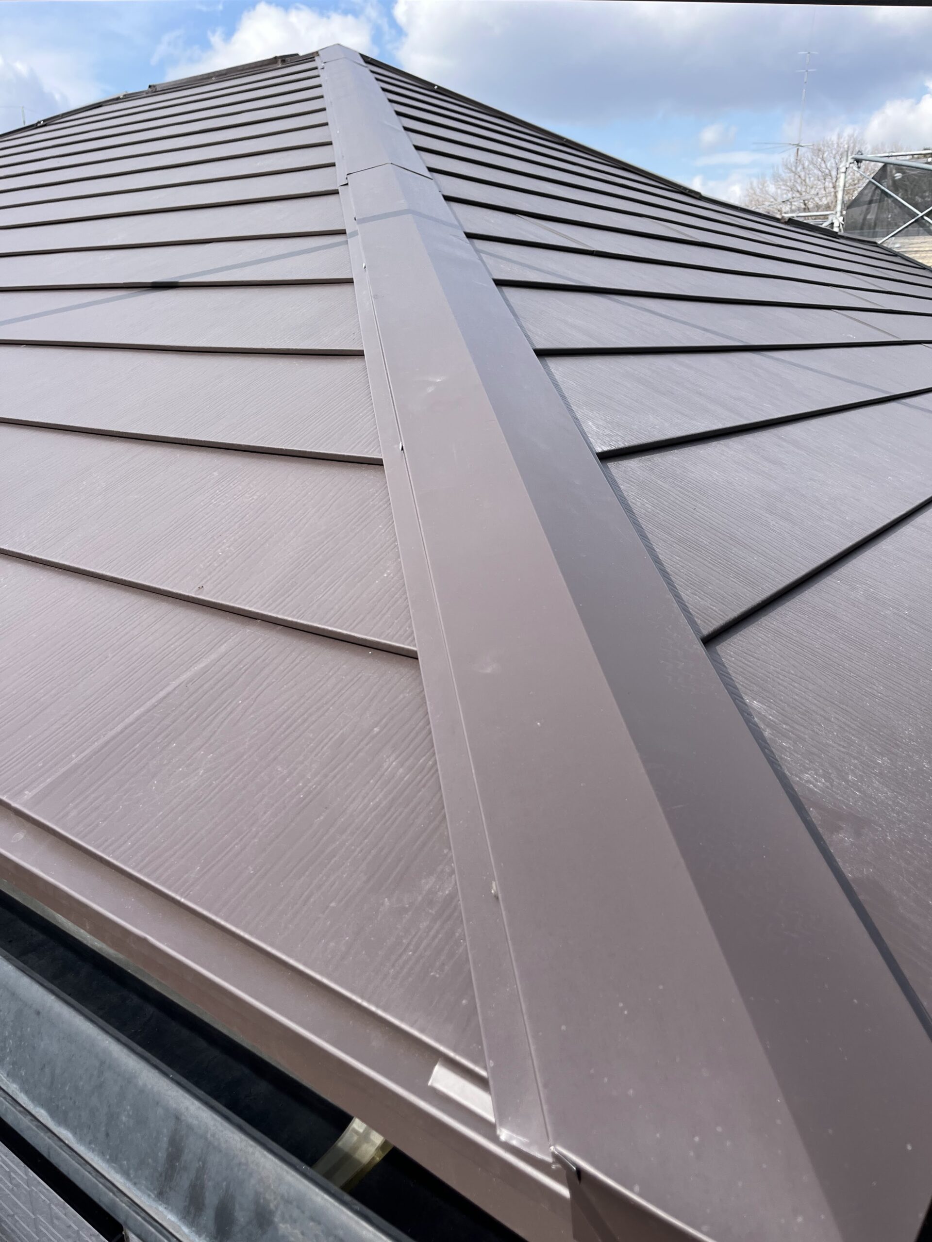 次に屋根本体として、断熱性・耐久性に優れた金属屋根材「スーパーガルテクト」を施工いたします。