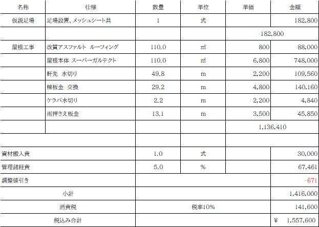 「仮設足場や板金工事は、見積書のどこにどう反映されているのか?」