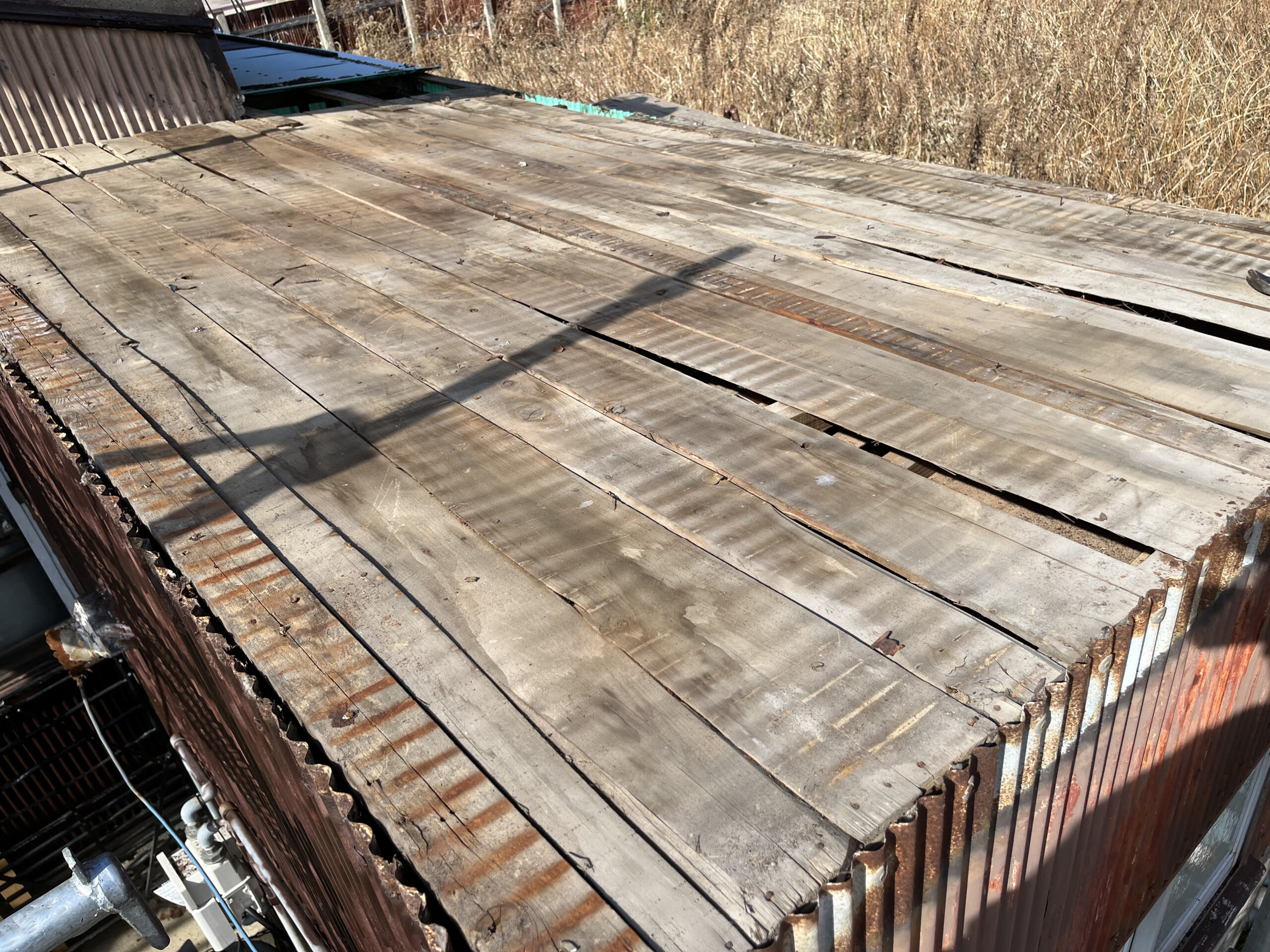 防水シートのさらに下にある、屋根の土台となる木の板です。