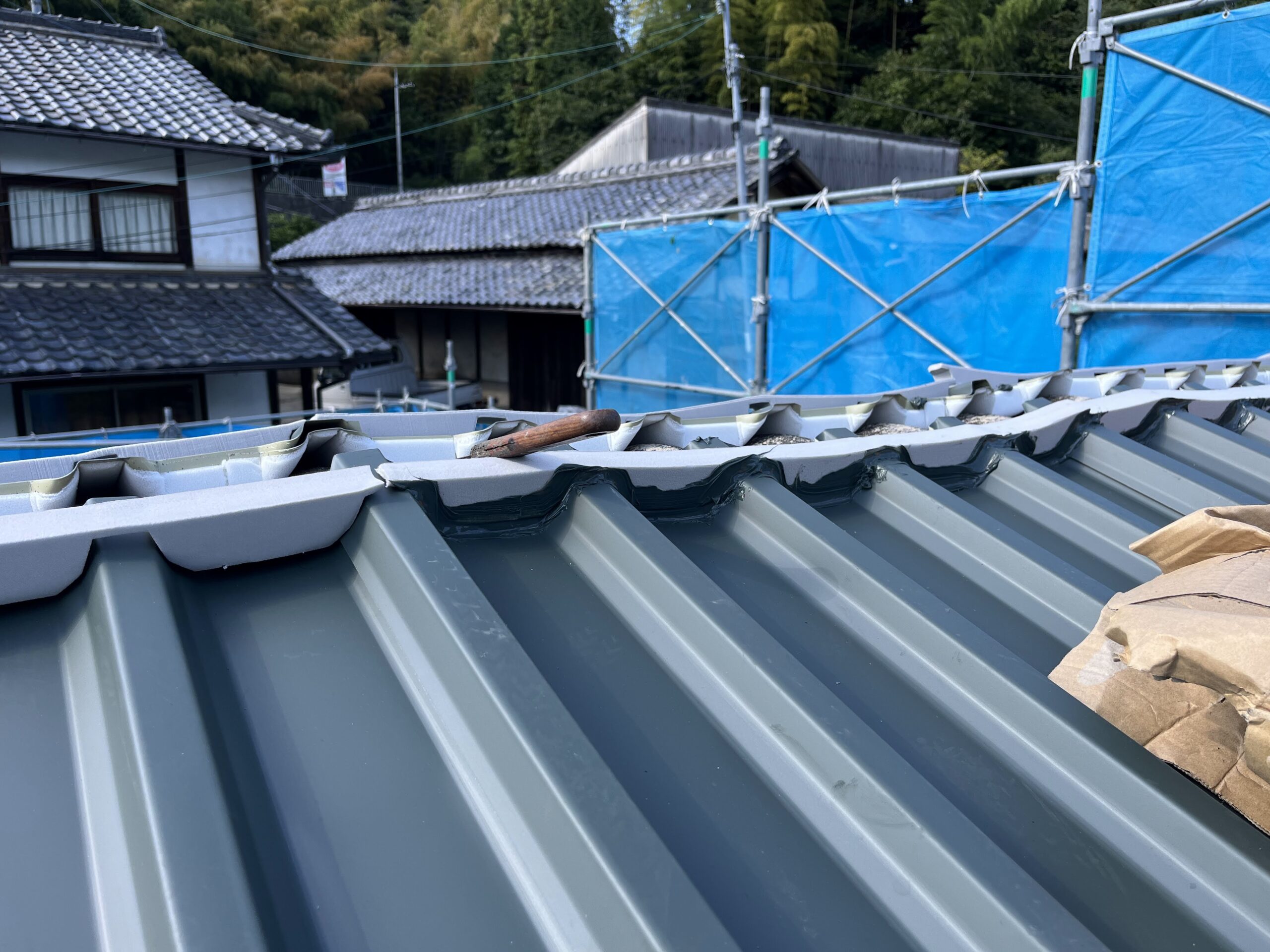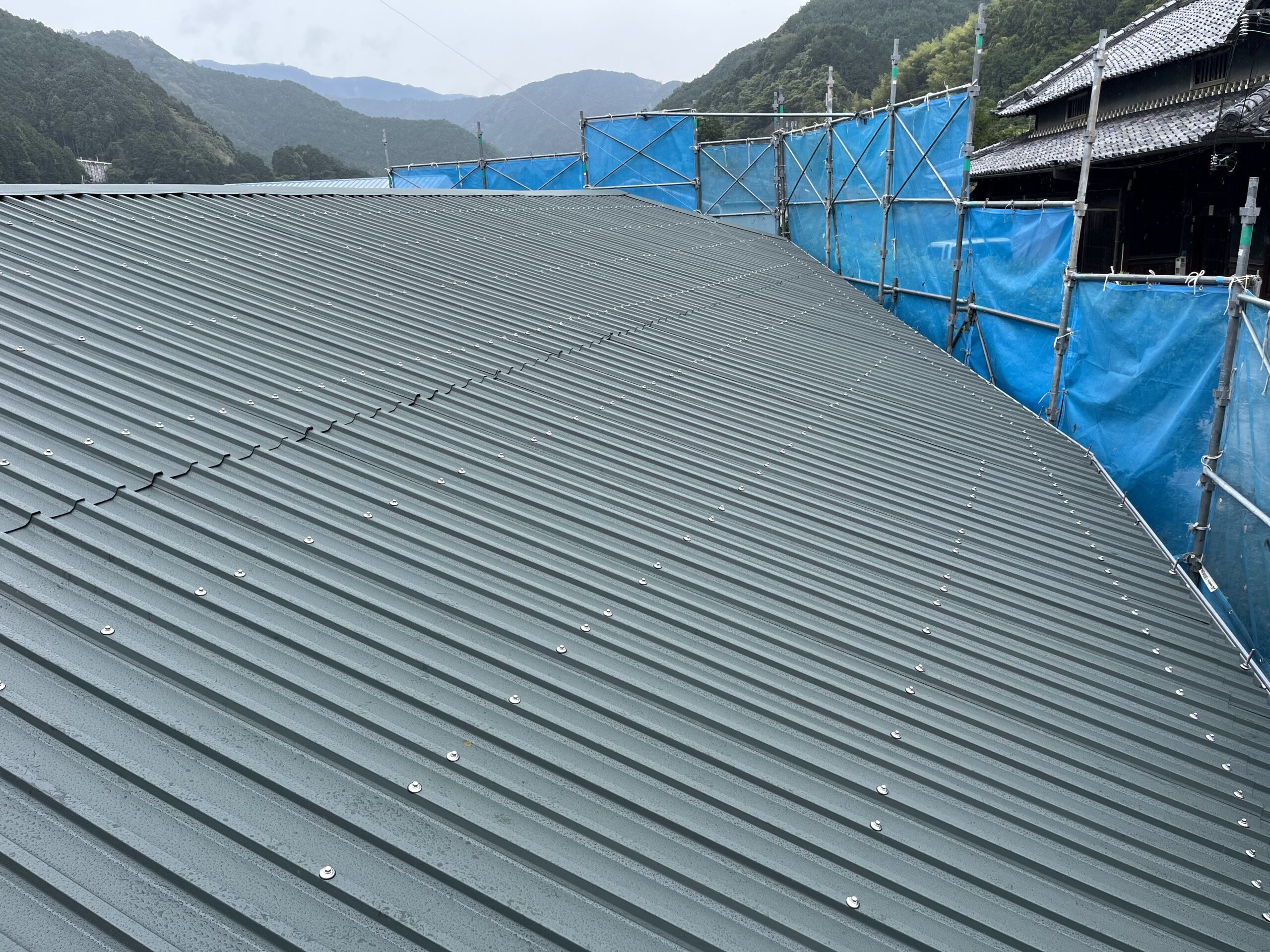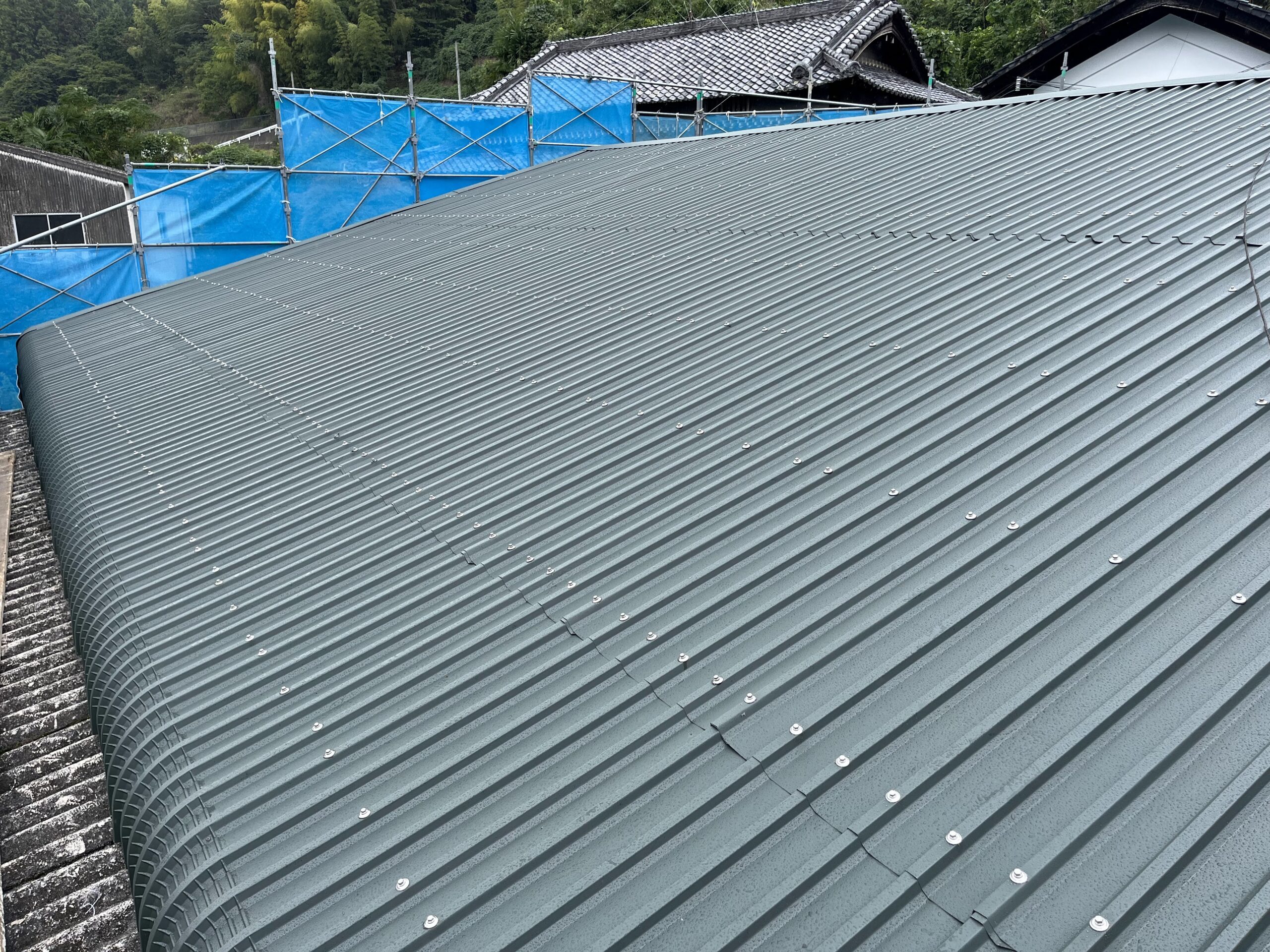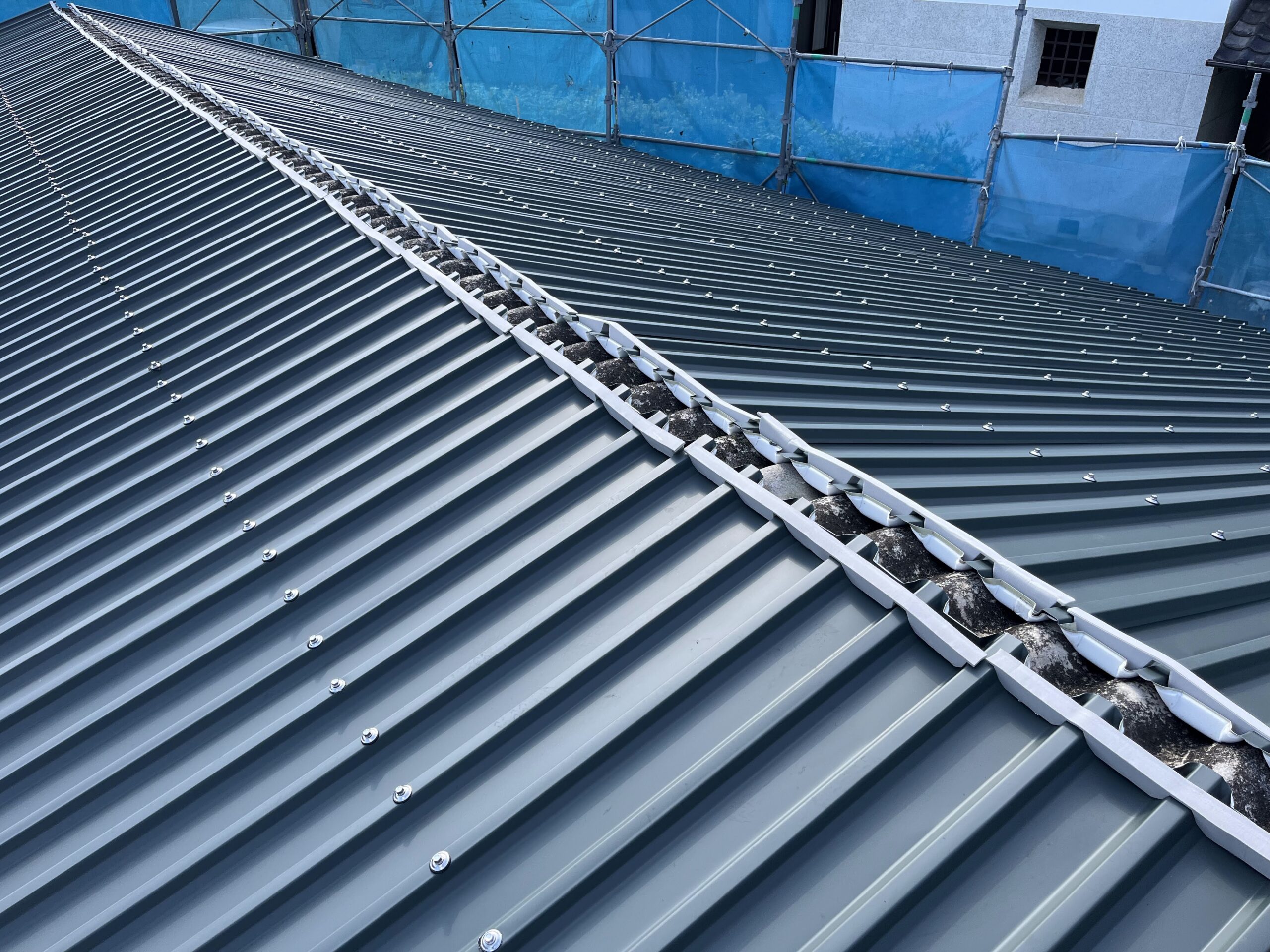 そこで、既存のスレート屋根を撤去せず、ガルバリウム鋼板(0.6mm厚)を使用したカバー工法を採用しました。